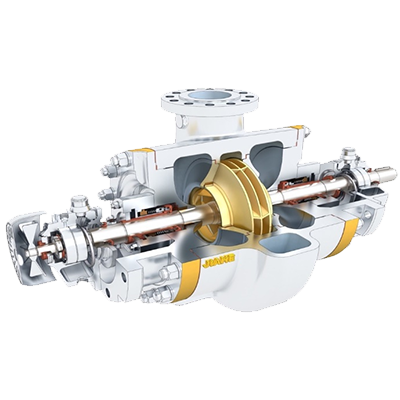 JHBB/JHBD泵(BB2)為兩級、徑向剖分兩端支承離心泵。符合API610-11th標準。JHBB為首級單吸,JHBD為首級雙吸。進出口法蘭尺寸滿足ANSI或ISO標準。密封腔的設計符合ISO21...